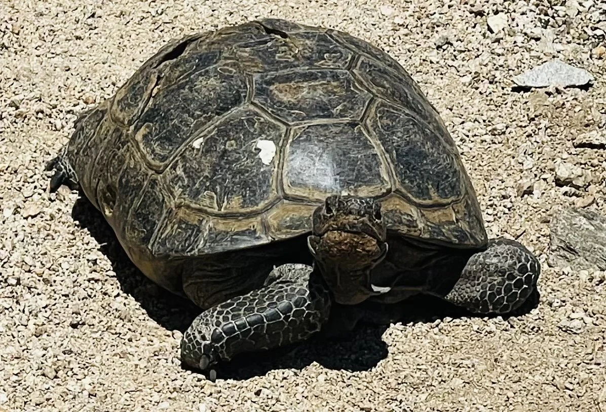 The long descent gave way to a gradual climb out of the valley, through a wind farm and into dry rolling hillside. And perhaps one of my most surprised moments on the trail - there slap bang in the middle of the trail was a tortoise! I hadn’t even realized they were wild in this part of the world. Living for 50 to 80 years and reaching up to 5kg in weight the desert tortoise spends 95% of it’s life in burrows so I was very lucky to see one.