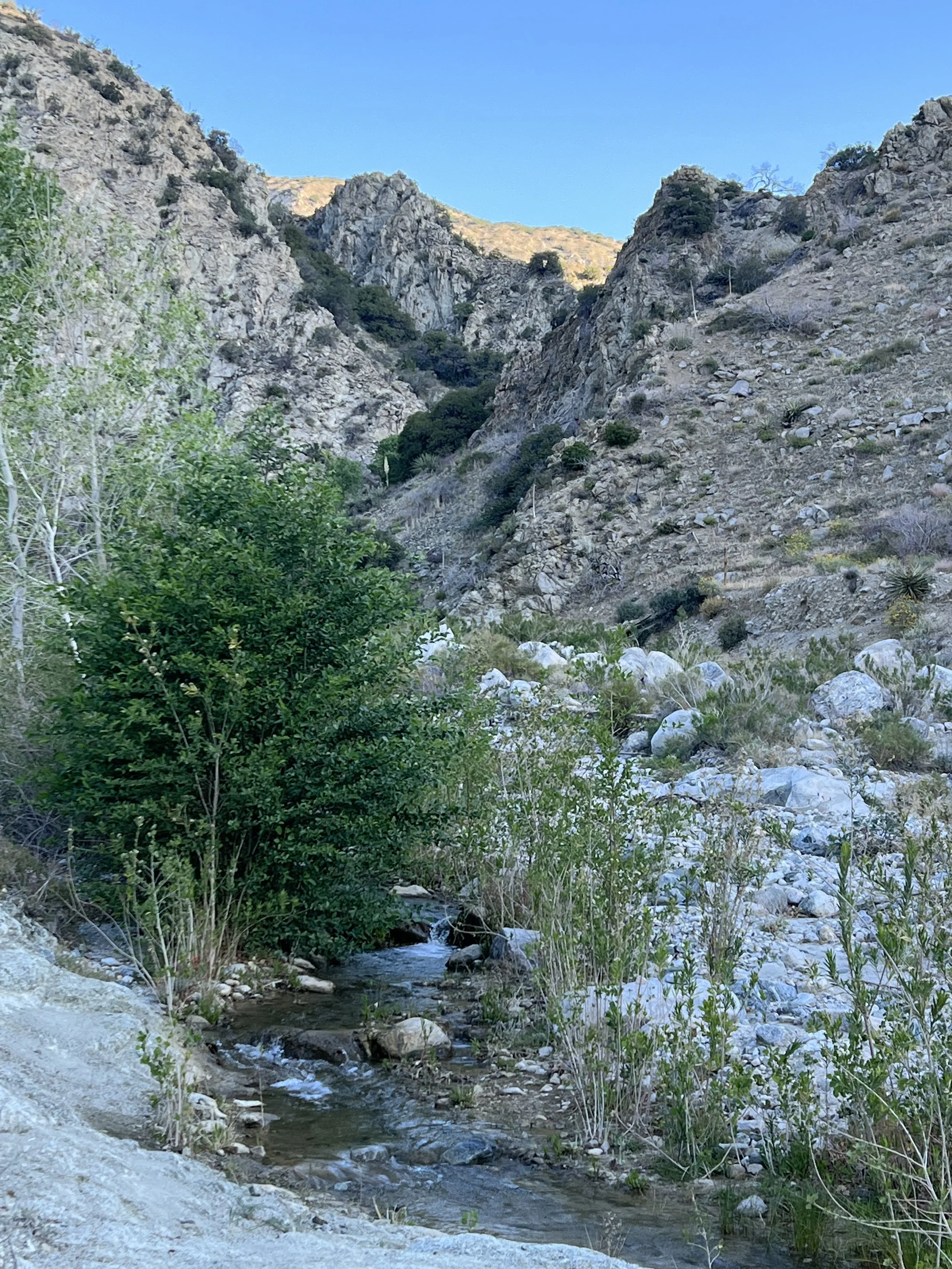 A long day was rewarded with a beautiful camping spot by Mission Creek - a creek flowing in the high desert fed from a spring 13 miles higher up the valley.