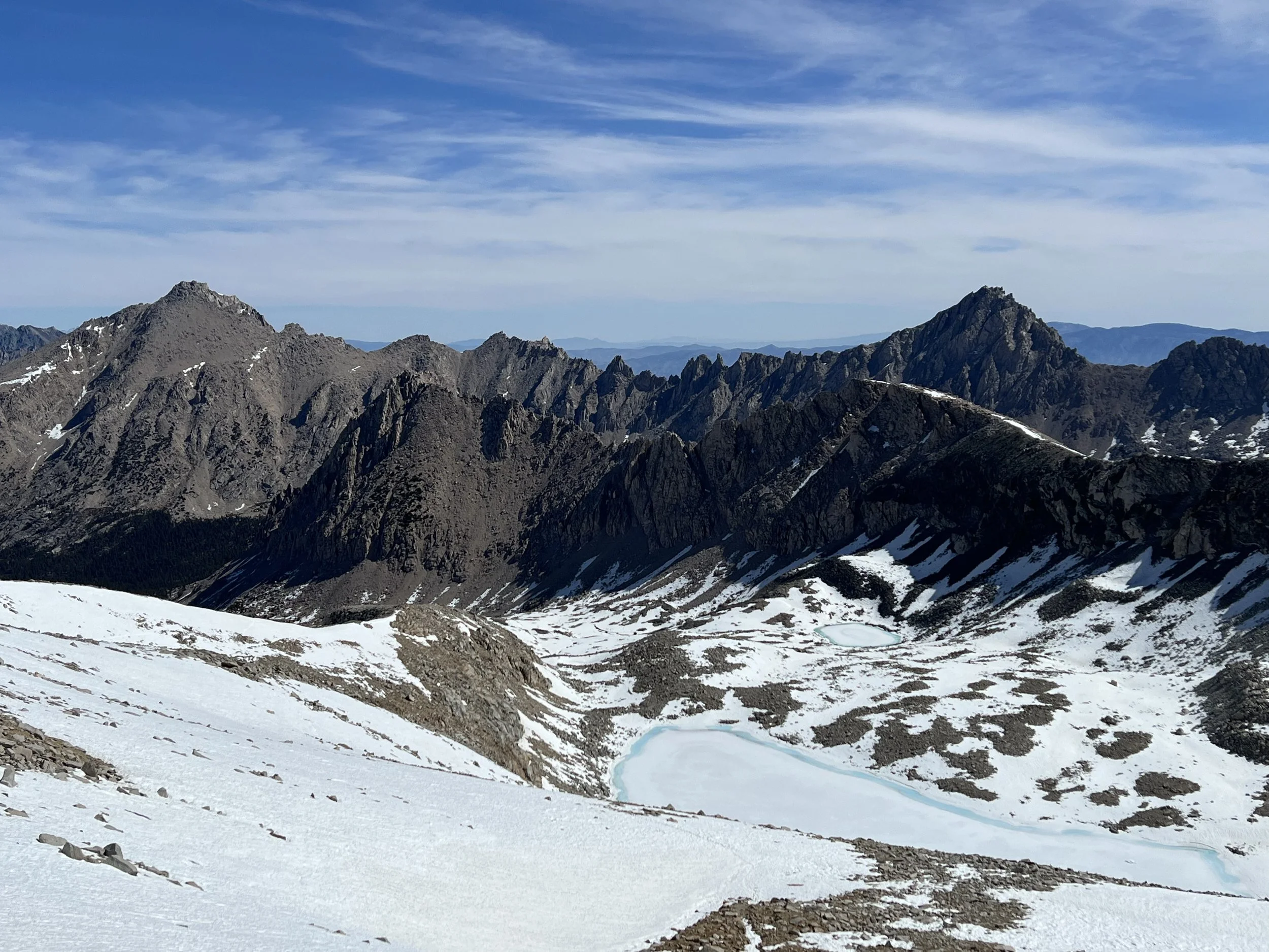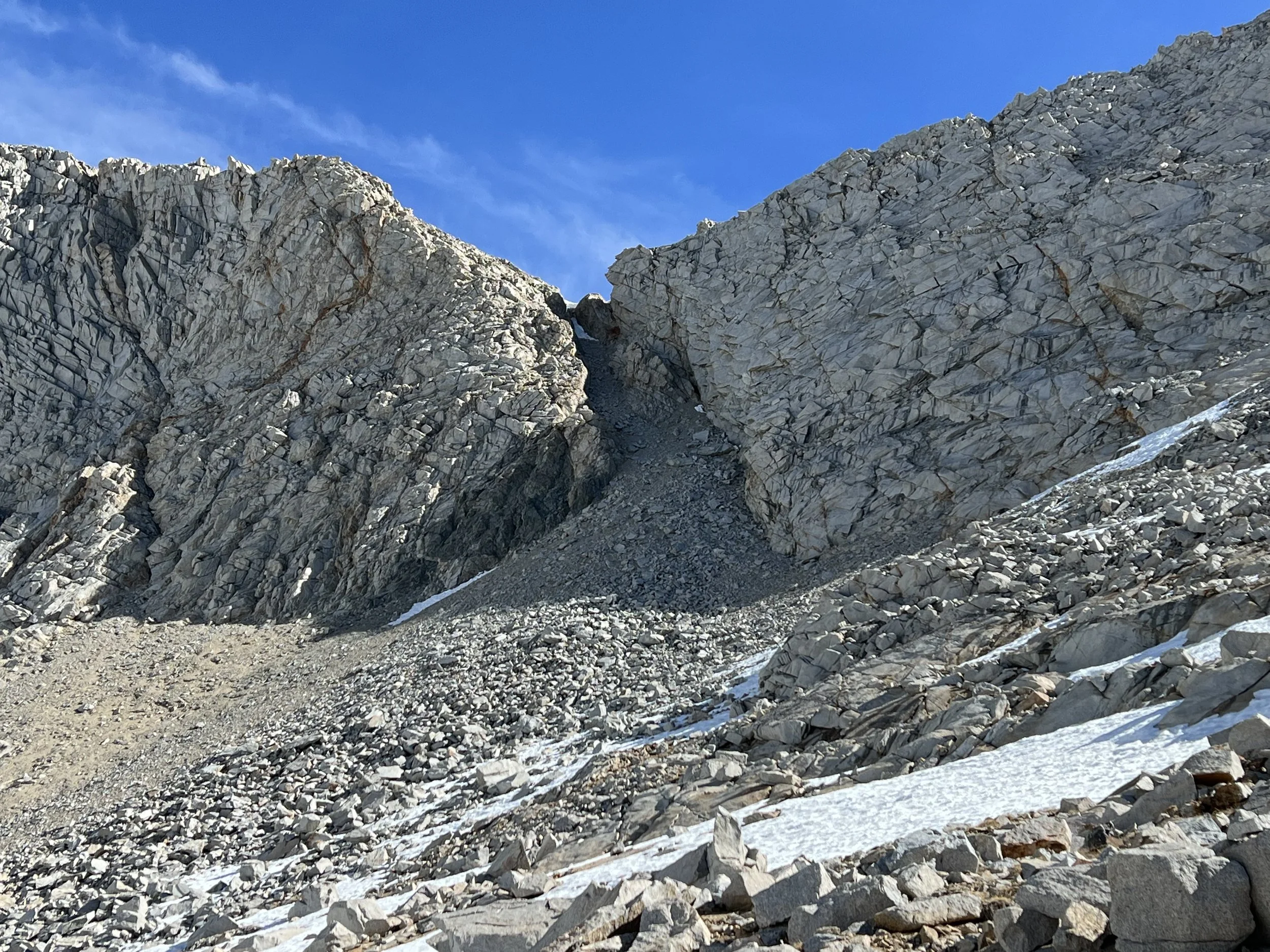 Looking back up towards Forester Pass from the north side. If you zoom in you can see the trail I took.