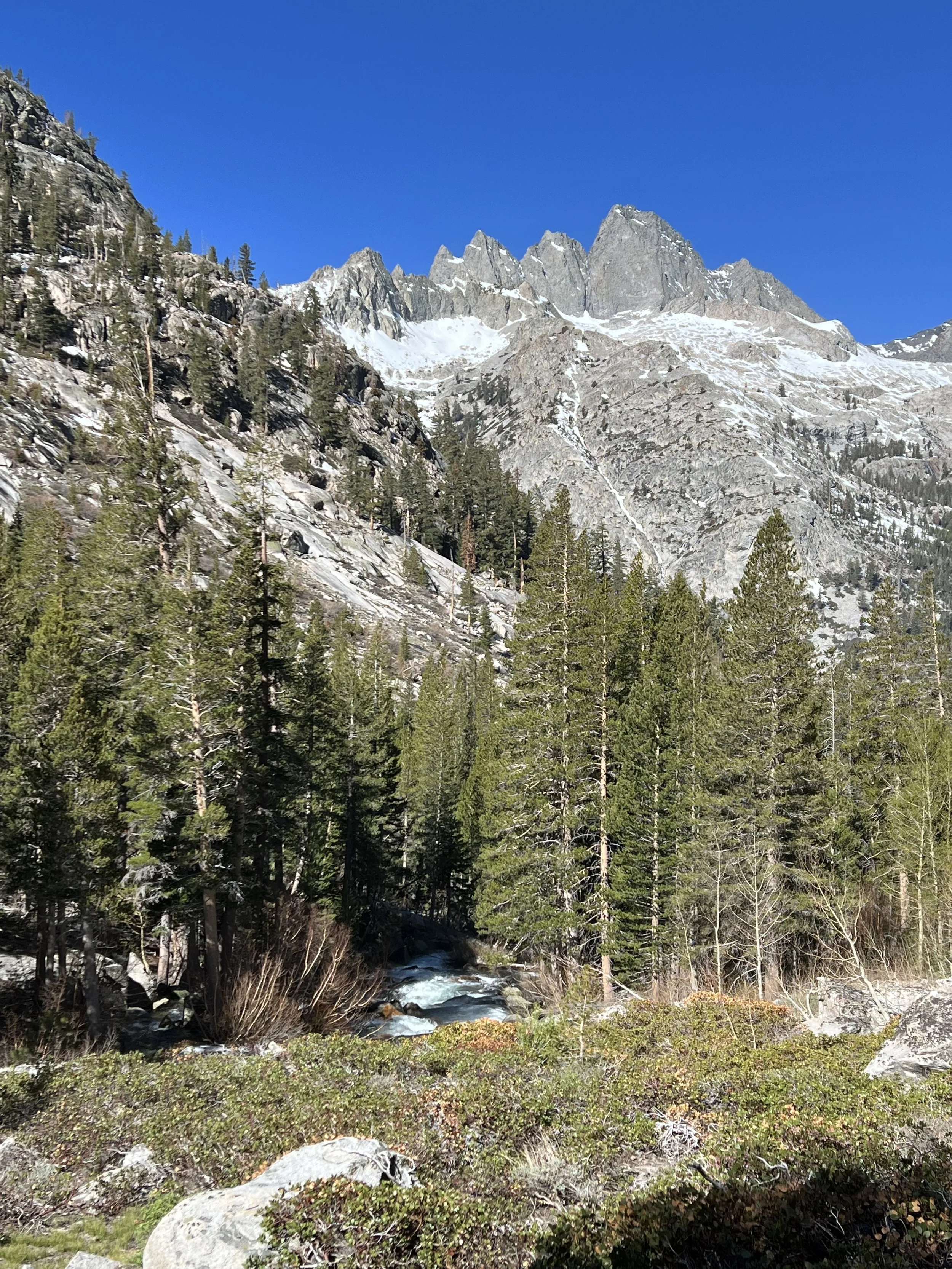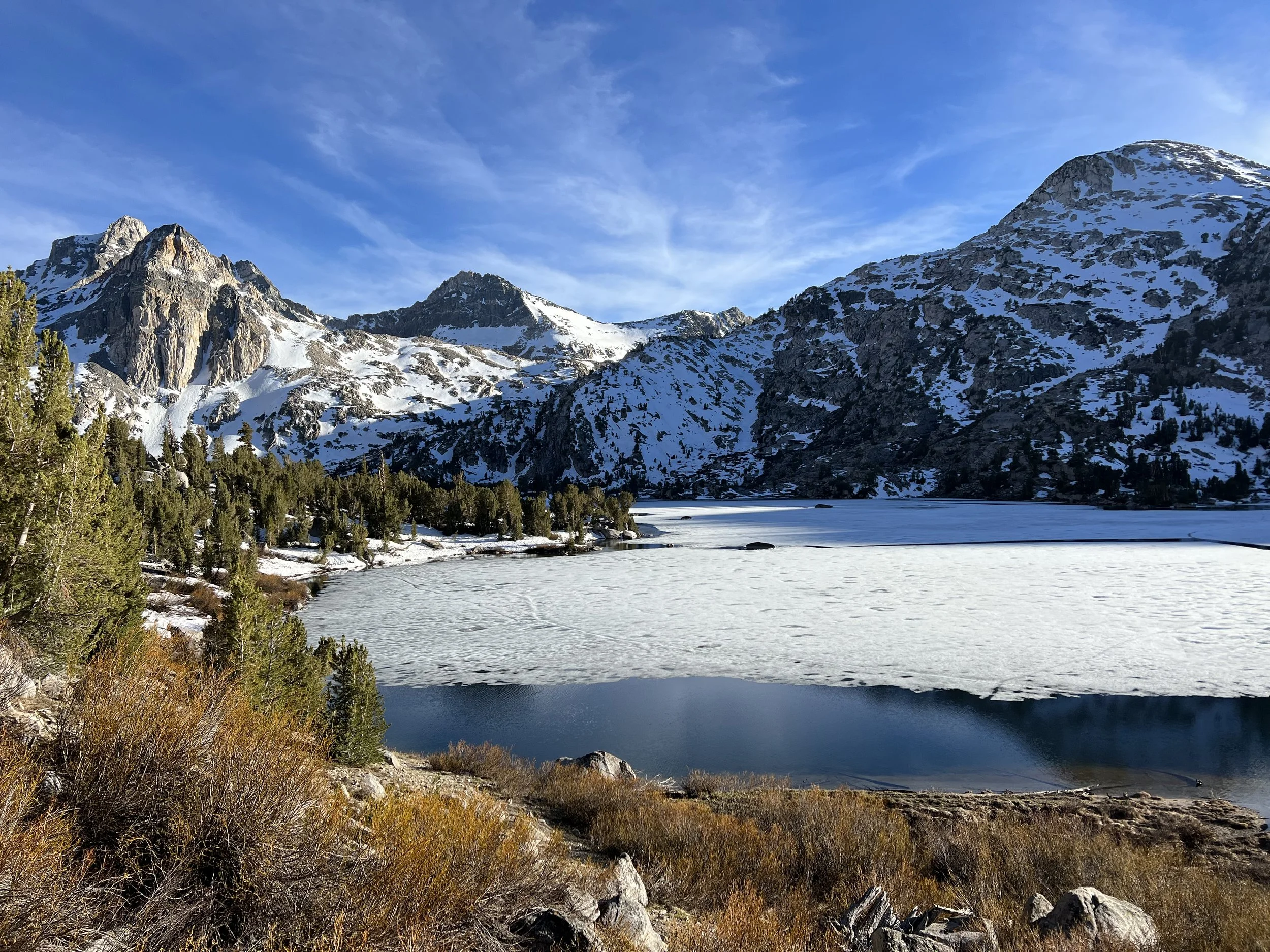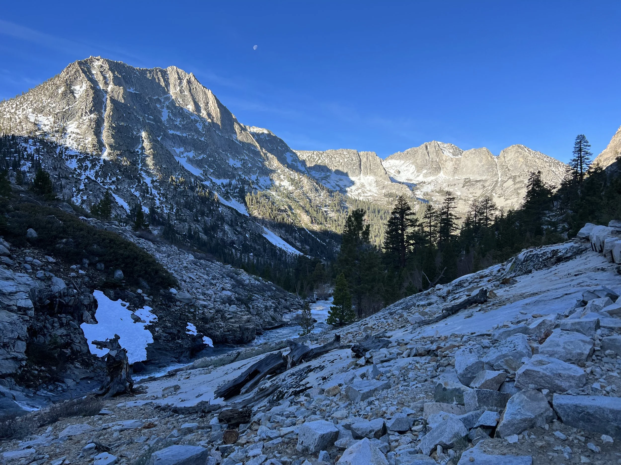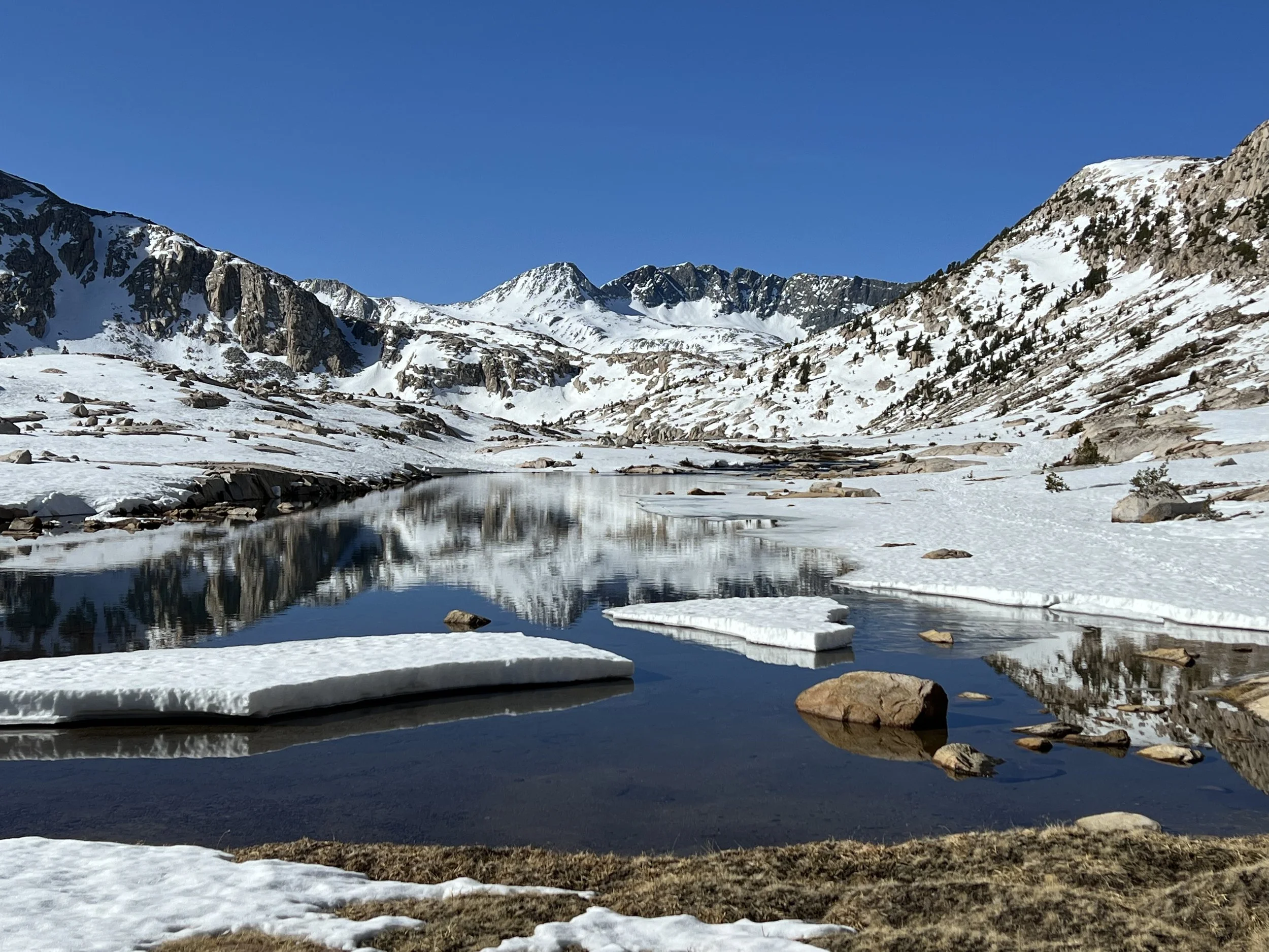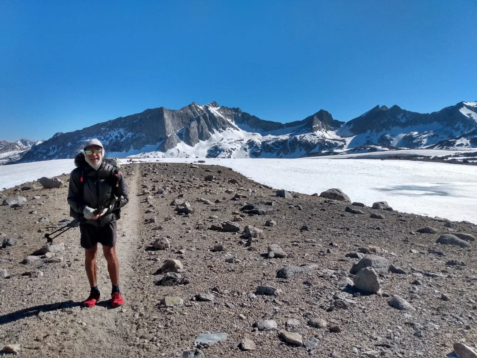 For nearly 200 miles the PCT and the John Muir Trail (JMT) follow the same trail apart from a few miles where they diverge. I’d completed the JMT in 2021 starting in Yosemite Valley and finishing atop Mt Whitney. On that occasion I’d been traveling south in June with virtually no snow. Traveling north, essentially in a winter environment was a totally different, and I think more spectacular and rewarding experience.