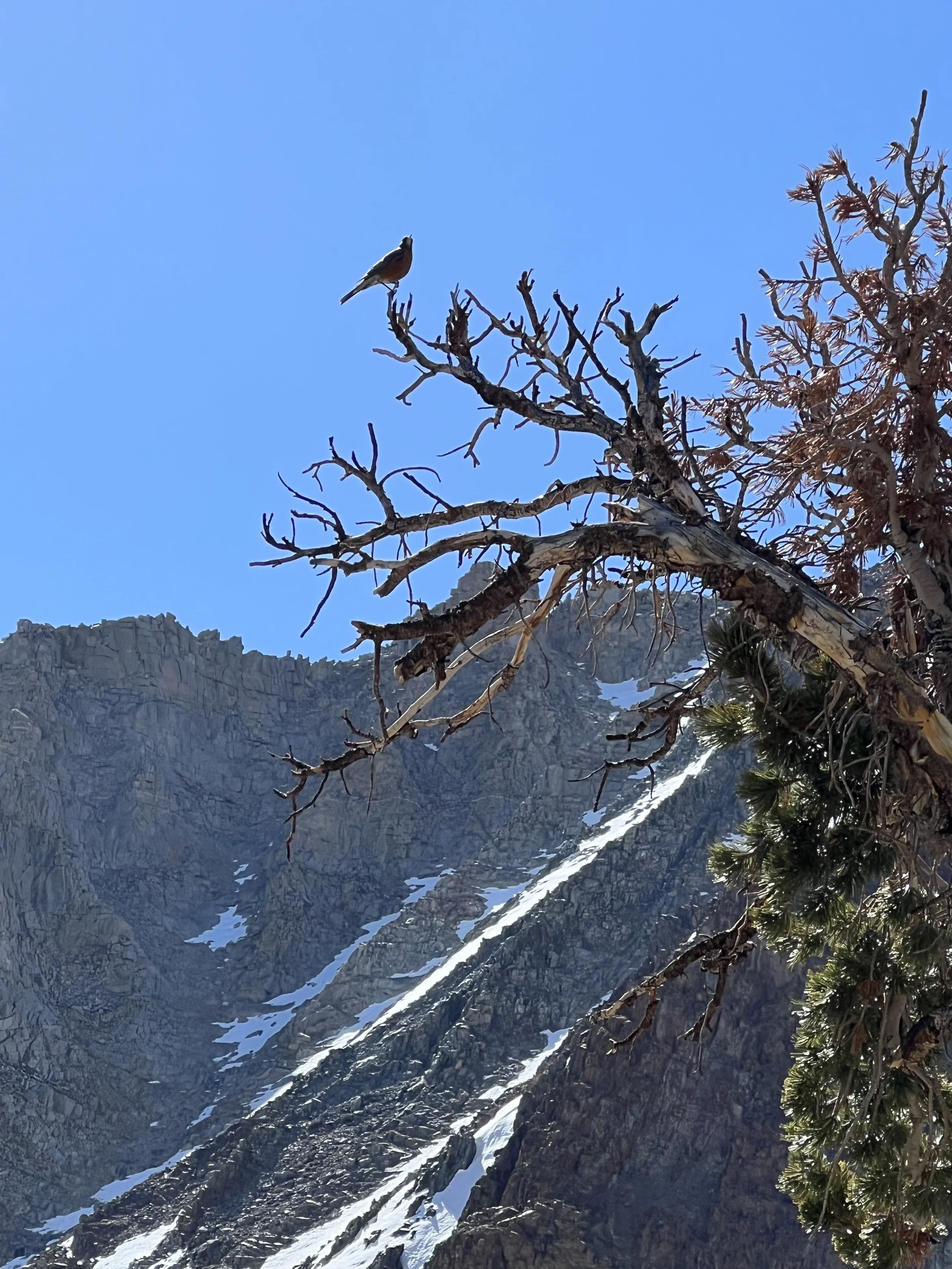 A grouse like (?) bird that kept charging me as I descended into the valley below Mather Pass